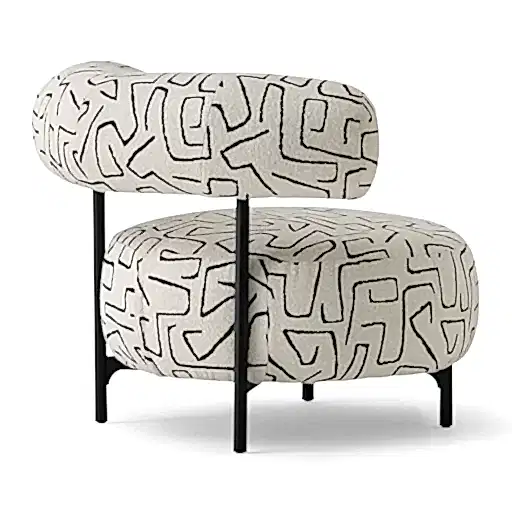 This chair exhibits intricate geometric patterns and creates a bold statement to the interior with its sumptuous cotton upholstery and foam padding...