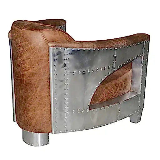 Crafted from the finest materials, this chair is made with a Riveted aluminium frame and feet and a brown cerato aniline leather seat. The plush metal is strong, polished, and well riveted. Genuine leather stitched on is soft, giving a good rich quality, which can perfectly balance industrial metals. This armchair is such an outstanding statement that will stand the test of time and never go out of style.