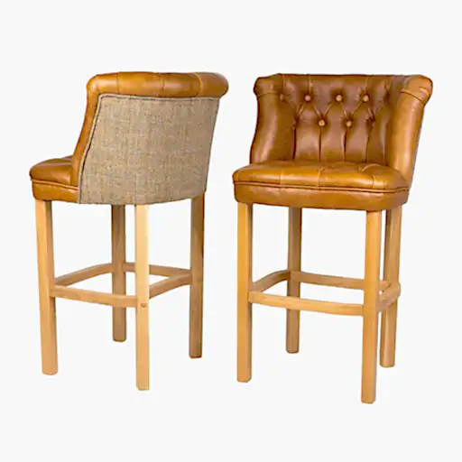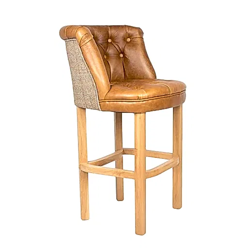 Hugo Vintage Leather & Harris Tweed Buttoned Bar Stool - Various Options