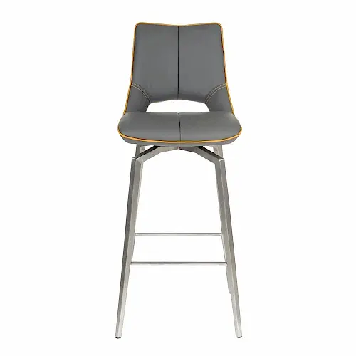 Mako Graphite Grey & Yellow Stitch Leather Swivel Bar Stool