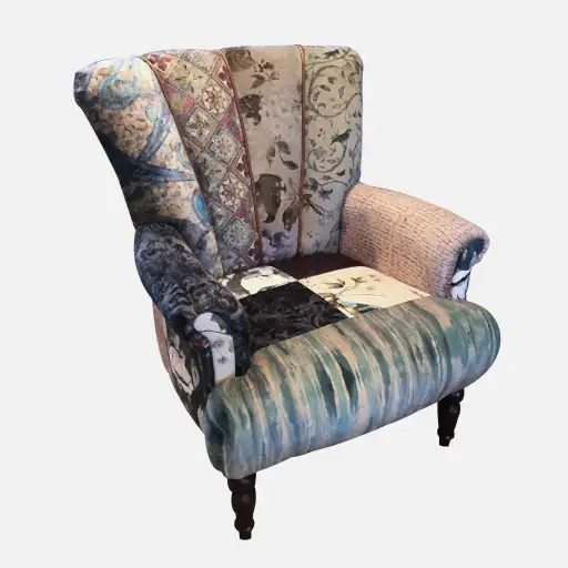 Lily Patchwork Harris Tweed, Velvet, Moon Wool & Vintage Leather Chair - Choice Of Size