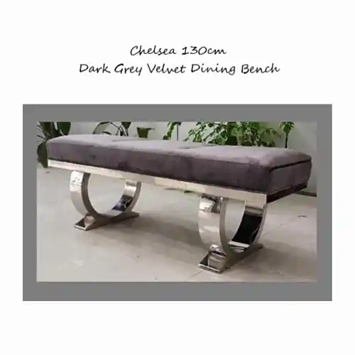 Chelsea Dark Grey Velvet & Chrome Leg Dining Bench - 130cm