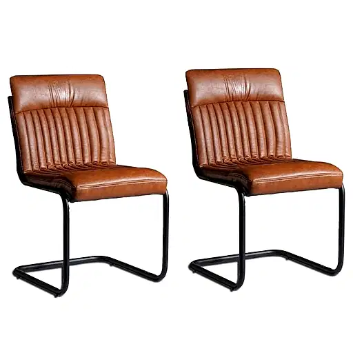 Prague Live Edge Collection Brown Leather Dining Chairs - Set Of 2